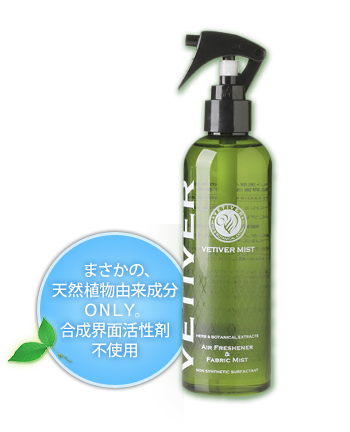 ベチベルミストは天然植物抽出物と水・エタノールからなる自然派。粘性がなくサラッとした手触りで、埃を寄せ付けません。
